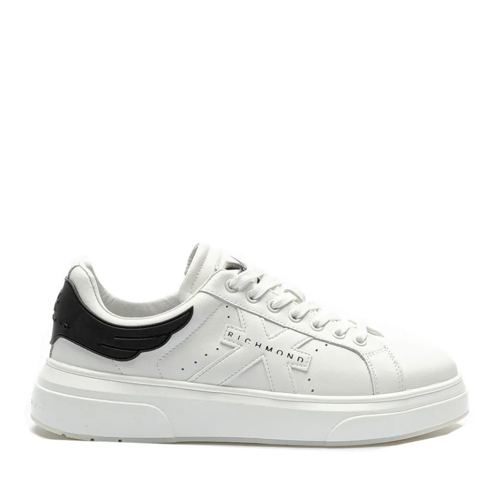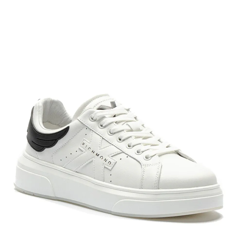 Sneakers John Richmond realizzate in pelle bianca con maxi suola in gomma logata. Logo frontale e posteriore. Applicazione logata in pelle nera sul tallone.