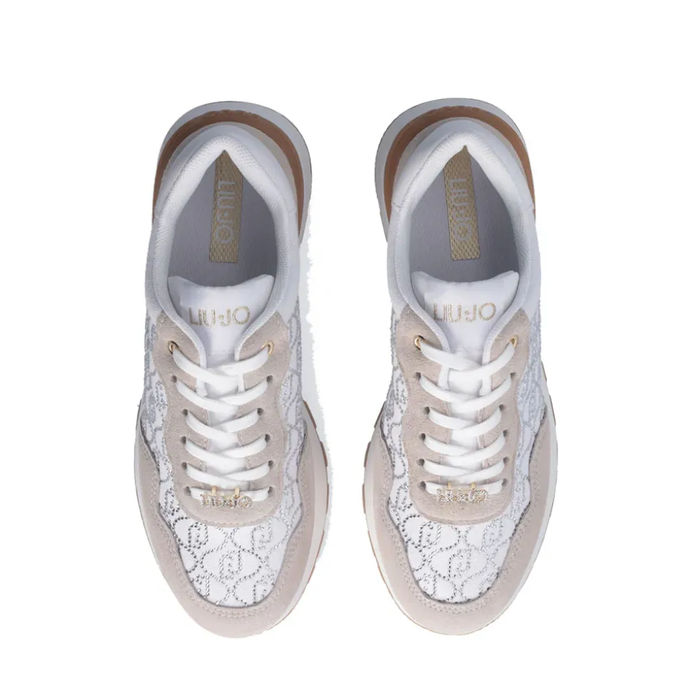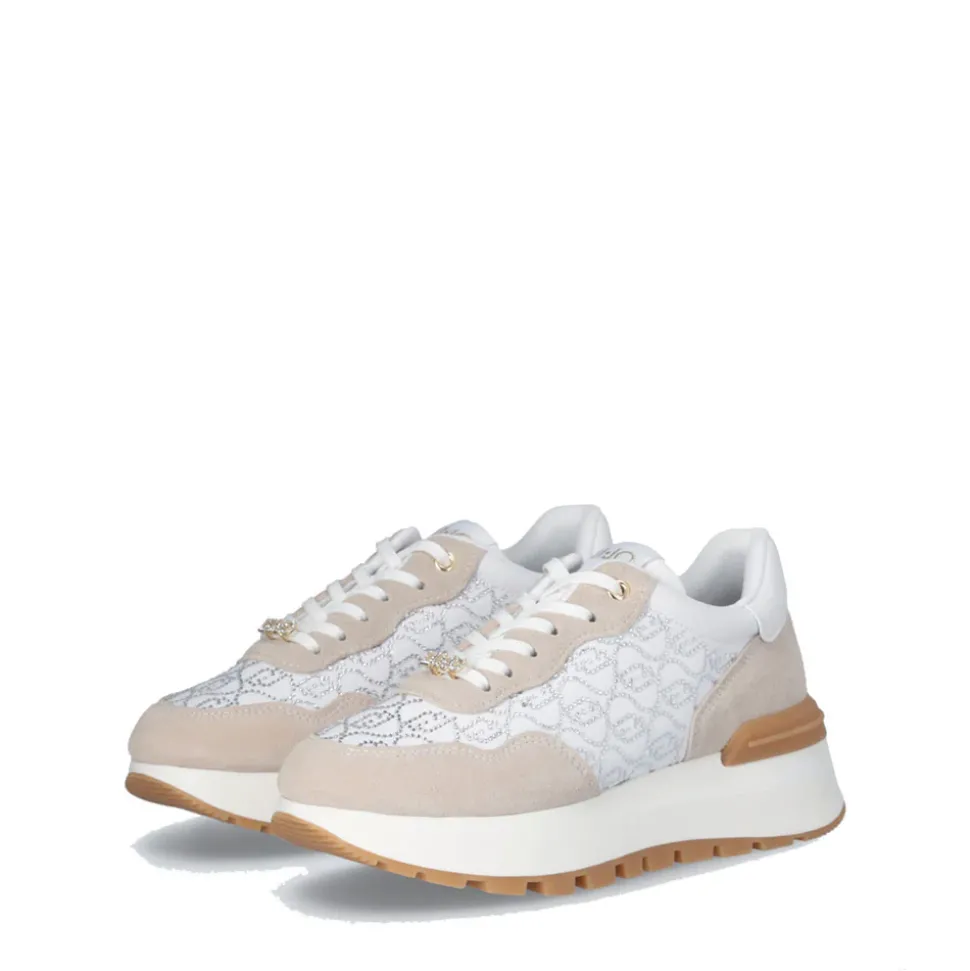 Sneakers con tomaia in suede e inserti in canvas con logo strass. Spoiler posteriore con logo. Suola bicolor con battistrada dentellato in gomma.