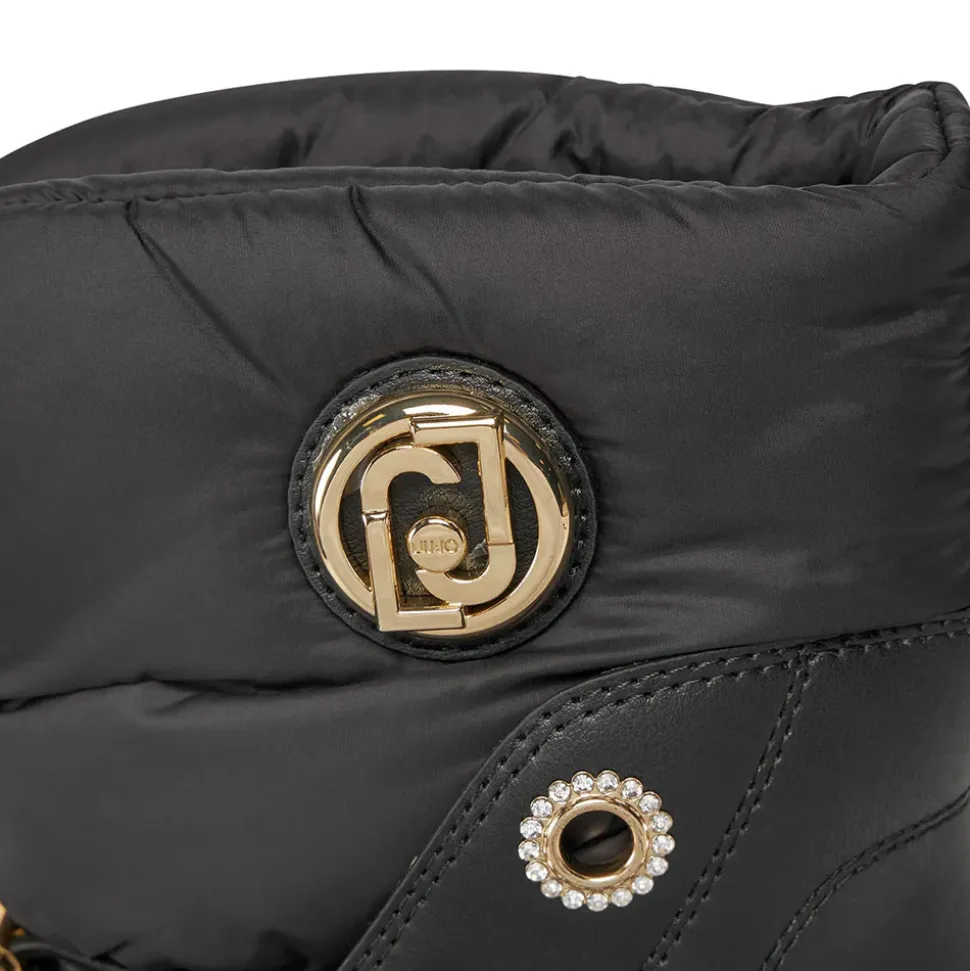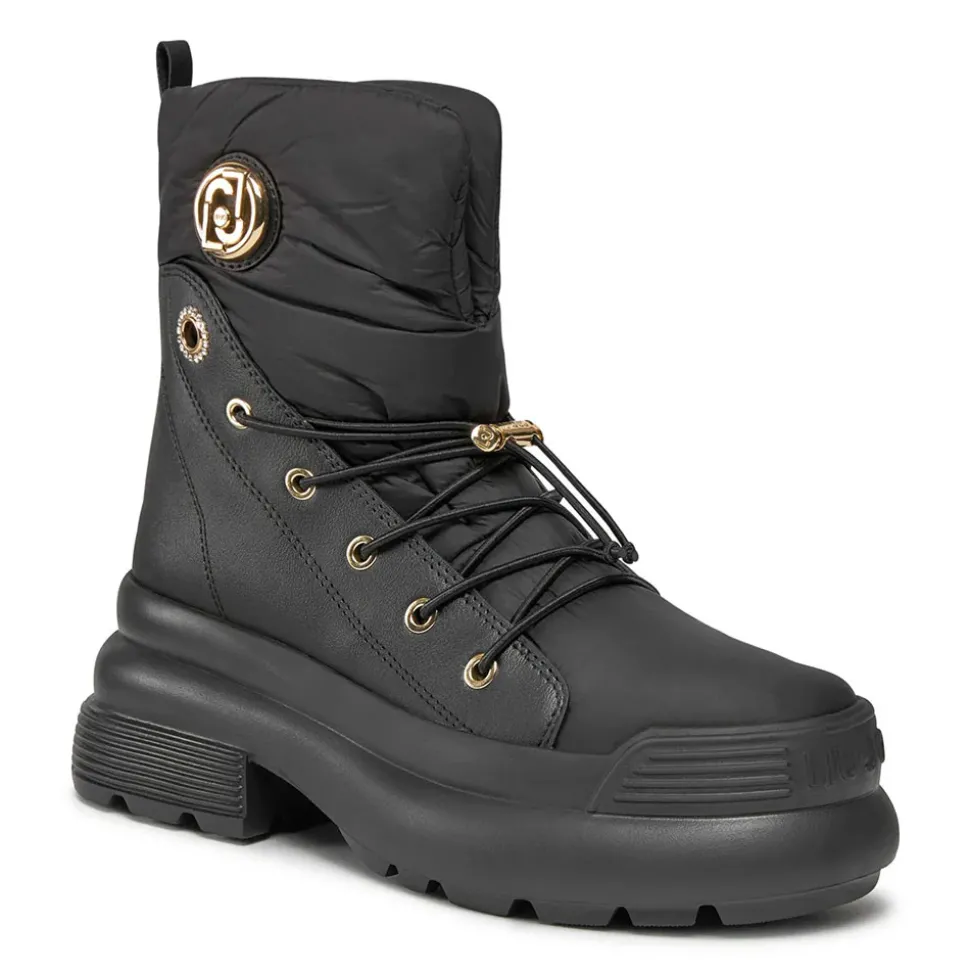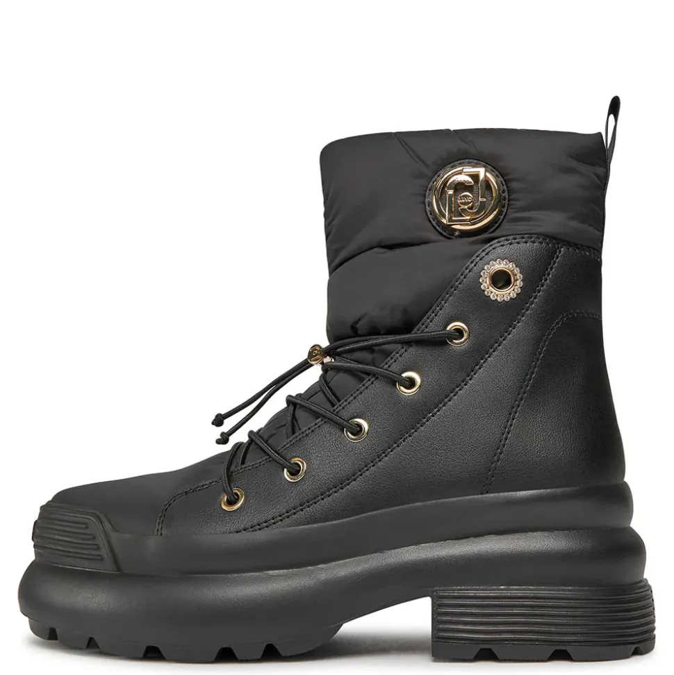 Anfibi in nylon imbottito con inserto in ecopelle. Allacciatura frontale. Logo metallico laterale. Suola combat con logo.