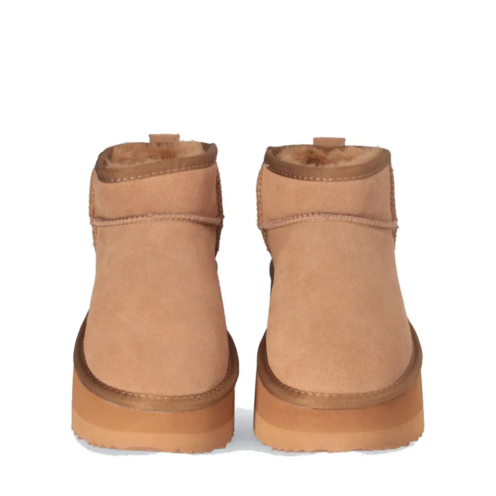 Stivaletti imbottiti con tomaia in suede. Logo metallico laterale. Suola platform in gomma.