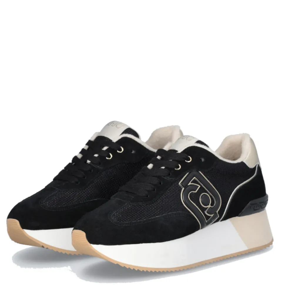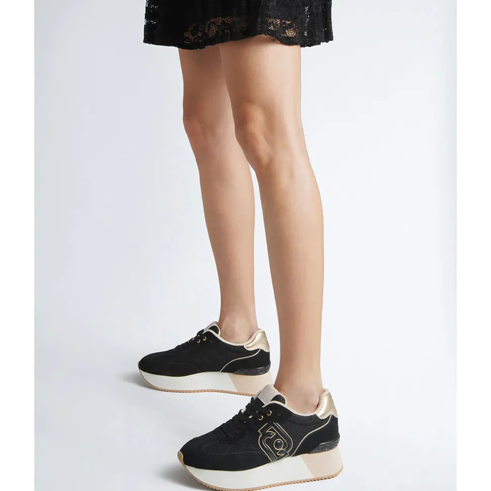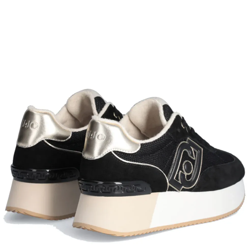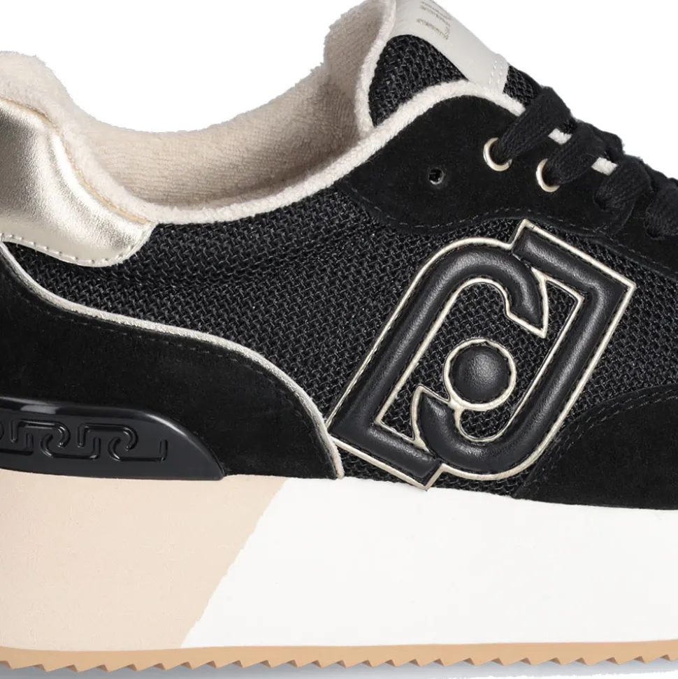 Sneakers con tomaia in suede e brighty mesh. Fodera interna effetto spugna. Logo bold con profili metallizzati. Spoiler posteriore con dettaglio monogram LJ. Suola platform bicolor.