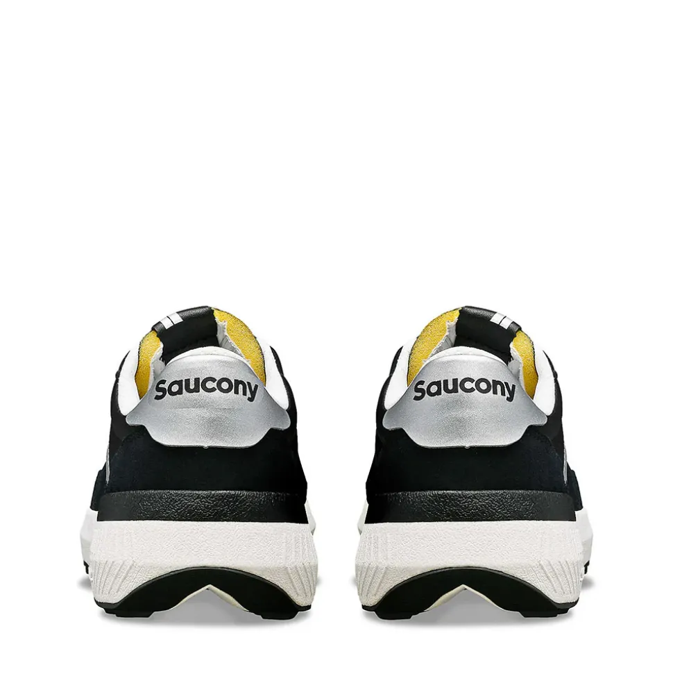 Per ogni modello, è stata usata una suola in gomma in tinta per creare un senso di uniformità accattivante. I dettagli sono lievi e ben calcolati: cuciture briose che evidenziano l’iconico logo Saucony, un’etichetta Universal Works che impreziosisce la linguetta e un motivo UW cucito a mano che sbuca dalla punta.