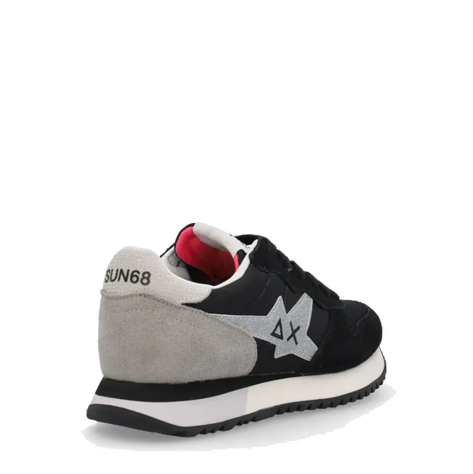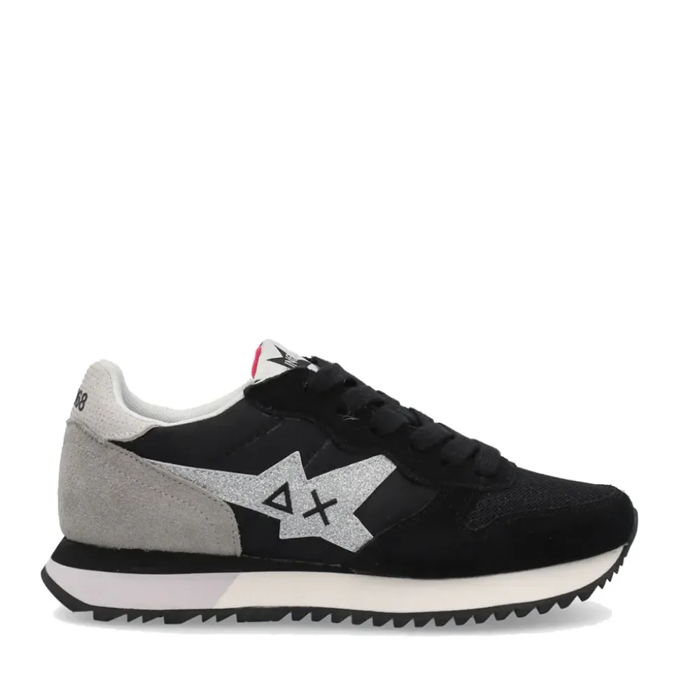 Innovativa, leggera ed estremamente femminile, Stargirl Glitter è la sneaker SUN68 che illumina i look quotidiani. La patch con glitter sul lato reinterpreta il logo in chiave moderna, mentre lo spoiler sul retro è rifinito con materale effetto snake.