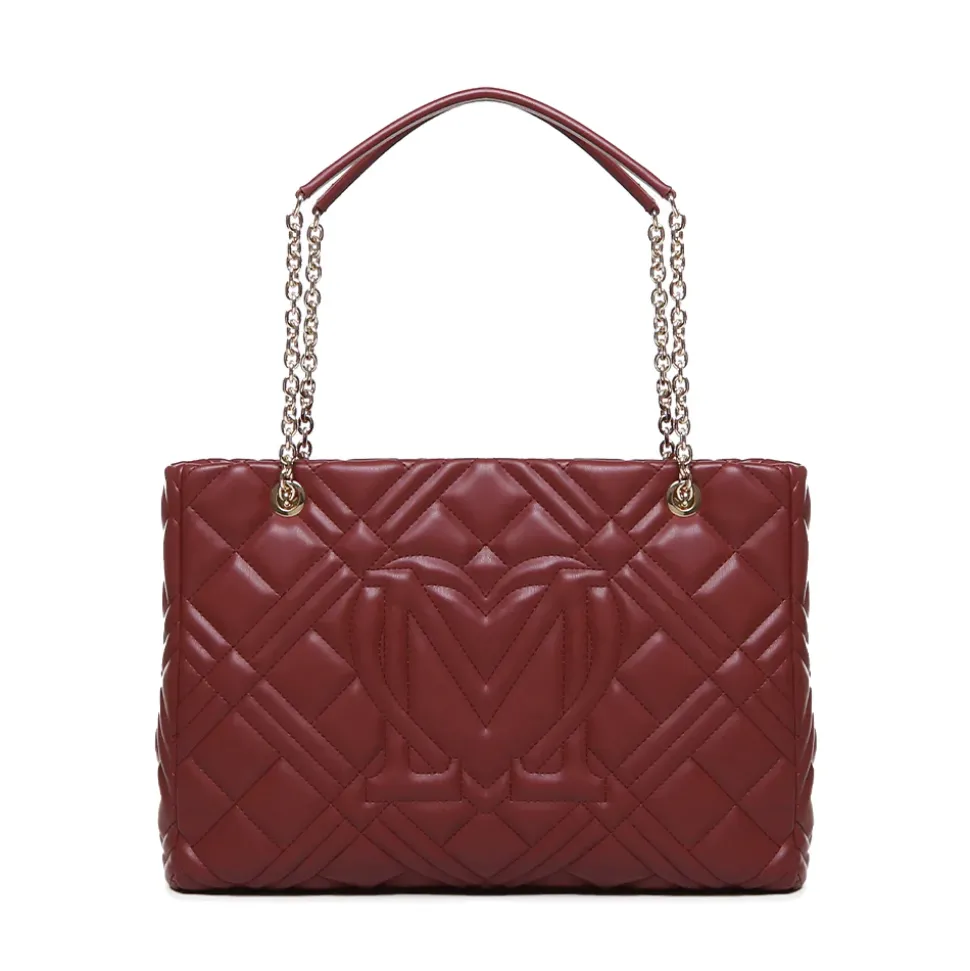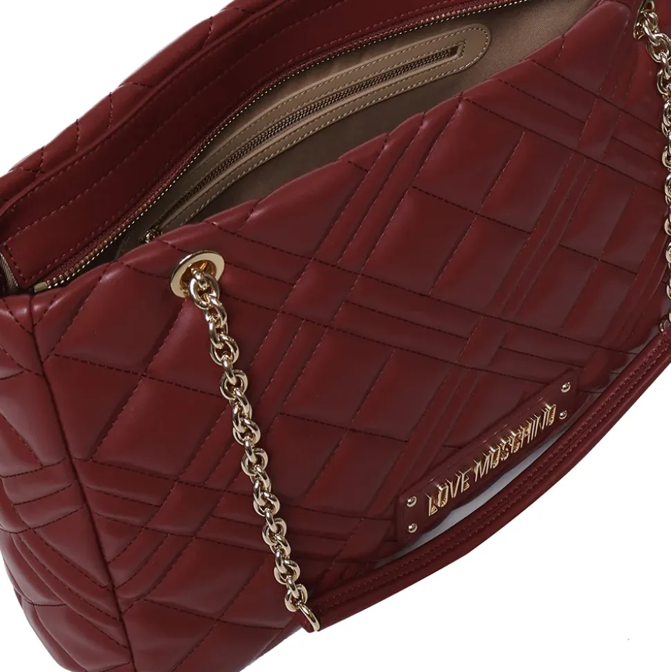 Borsa a spalla in ecopelle trapuntata Love Moschino linea Quilted bordeaux.
