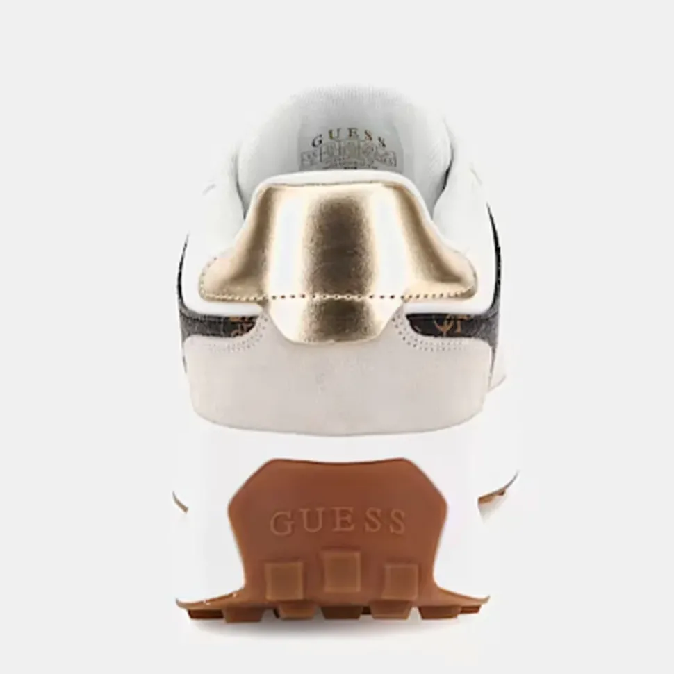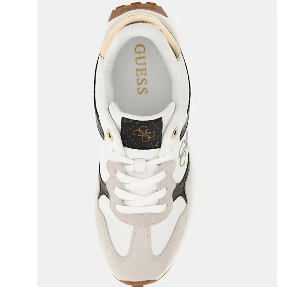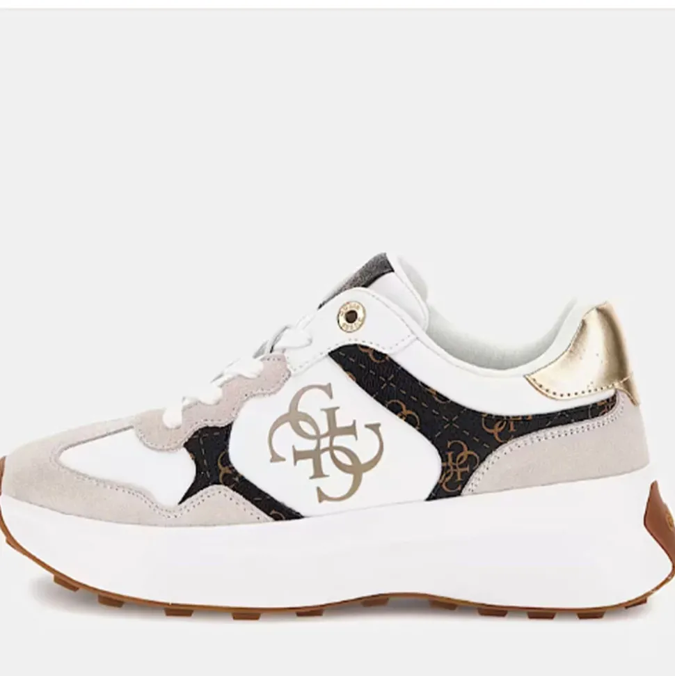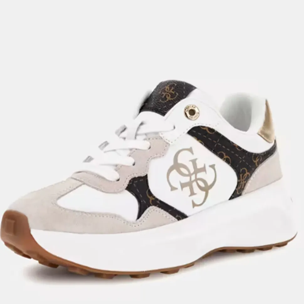 Sneakers in ecopelle bianca ideali per ogni outfit. Inserto laminato e inserti scamosciati. Sottopiede e fodera interna in poliestere. Suola in tessuto e gomma. Punta tonda. Chiusura con stringhe. Altezza para 4,5 cm.