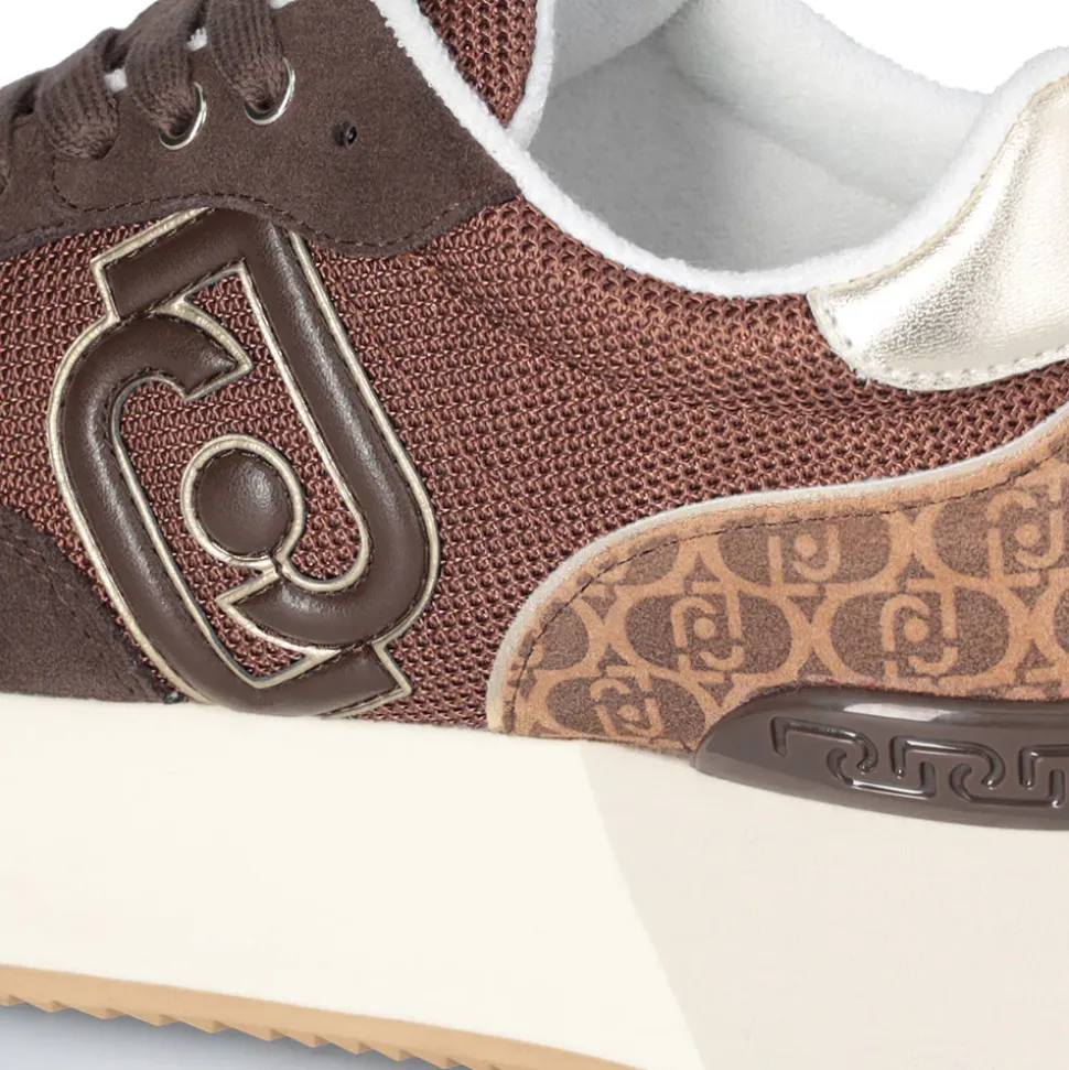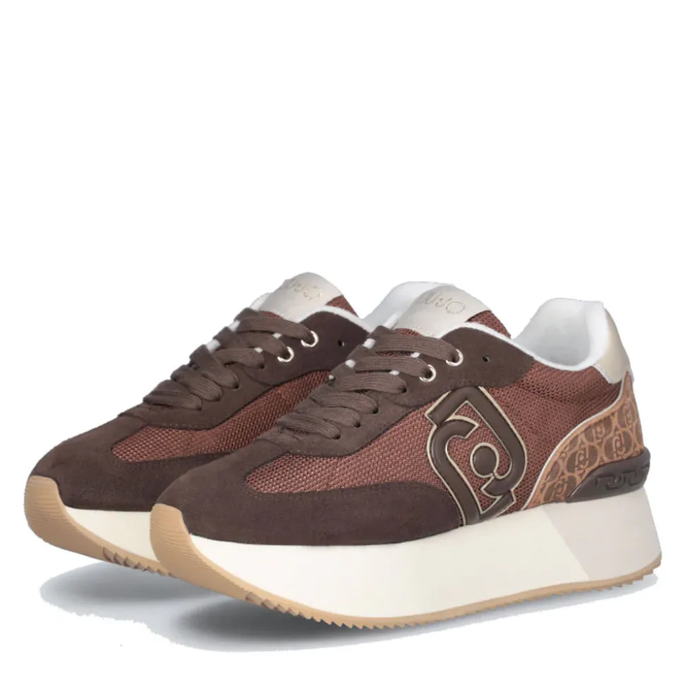 Sneakers platform con tomaia in suede e brighty mesh con inserto monogram stampato. Logo bold con profili metallizzati. Dettaglio laminato con logo sul tallone. Spoiler posteriore con dettaglio monogram LJ. Suola platform bicolor.