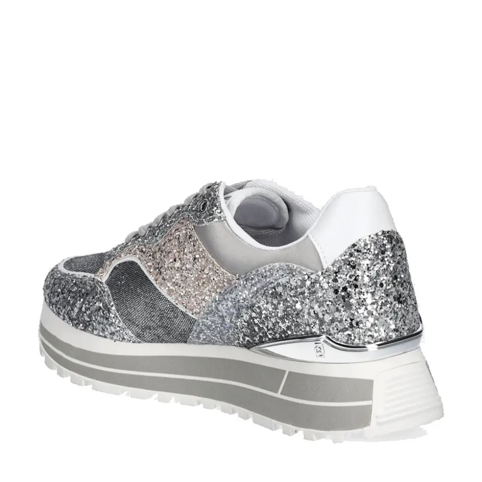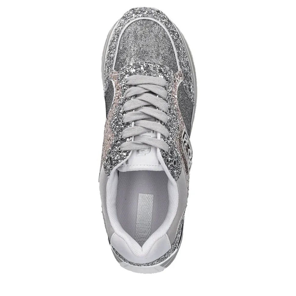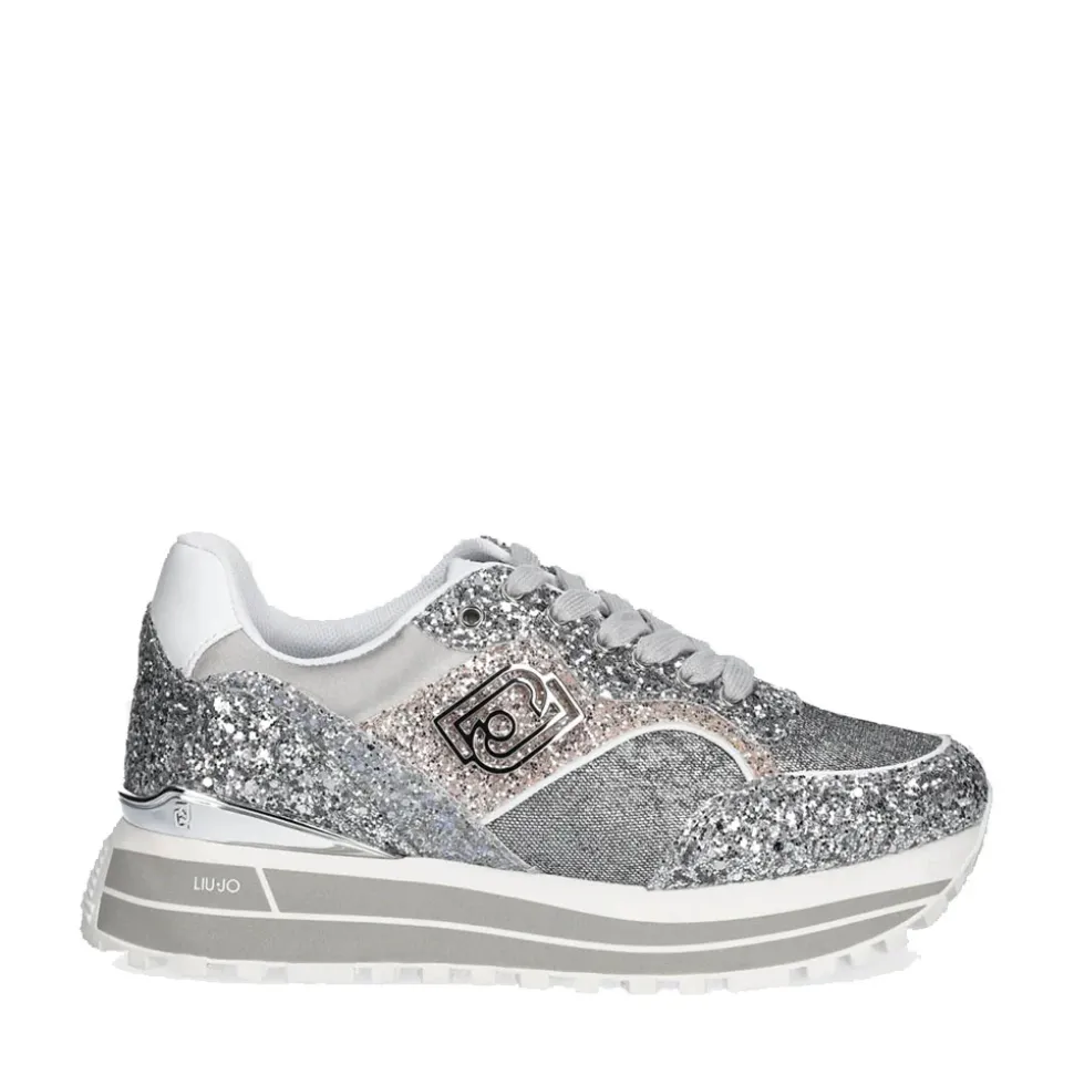 Sneakers con tomaia full glitter e inserti in lurex. Logo LJ metallico applicato sul lato. Suola platform con logo stampato.