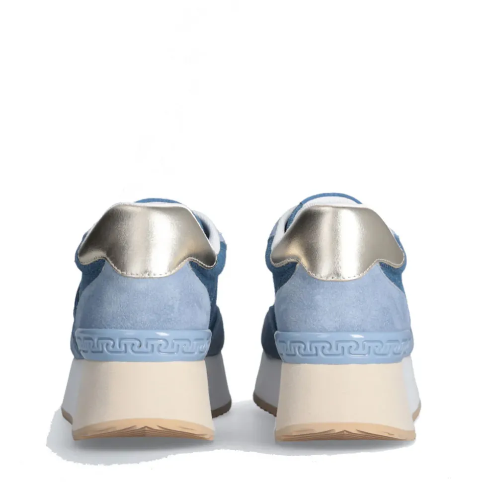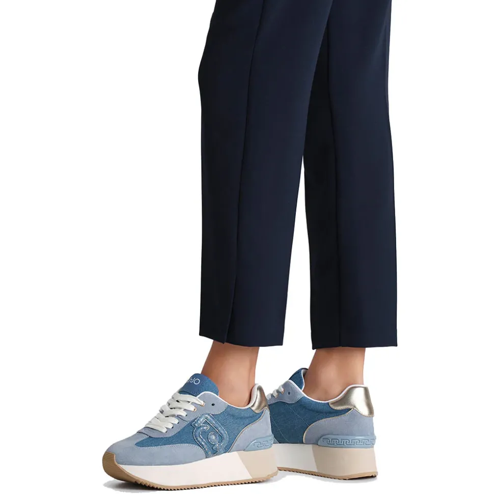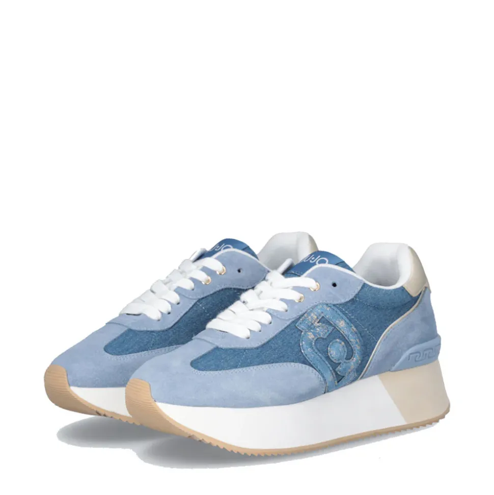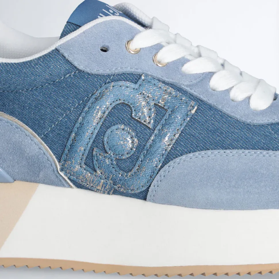 Sneakers con tomaia in denim e suede e dettagli laminati. Patch logo bold effetto glossy e used. Spoiler posteriore con dettaglio monogram LJ. Suola platform con battistrada dentellato.