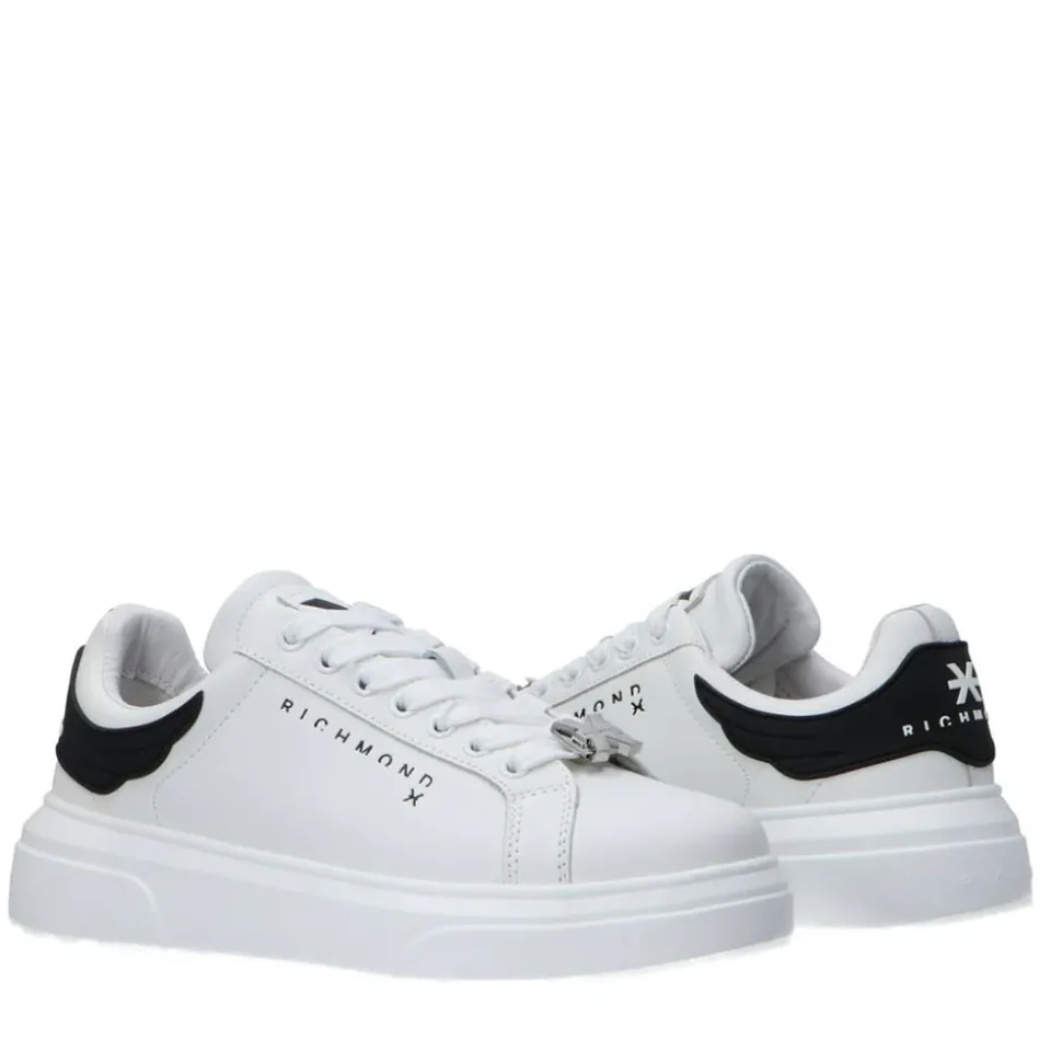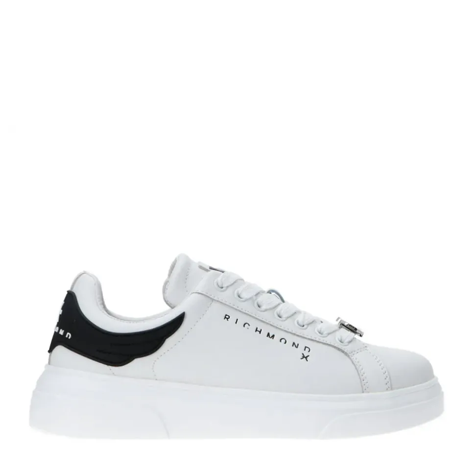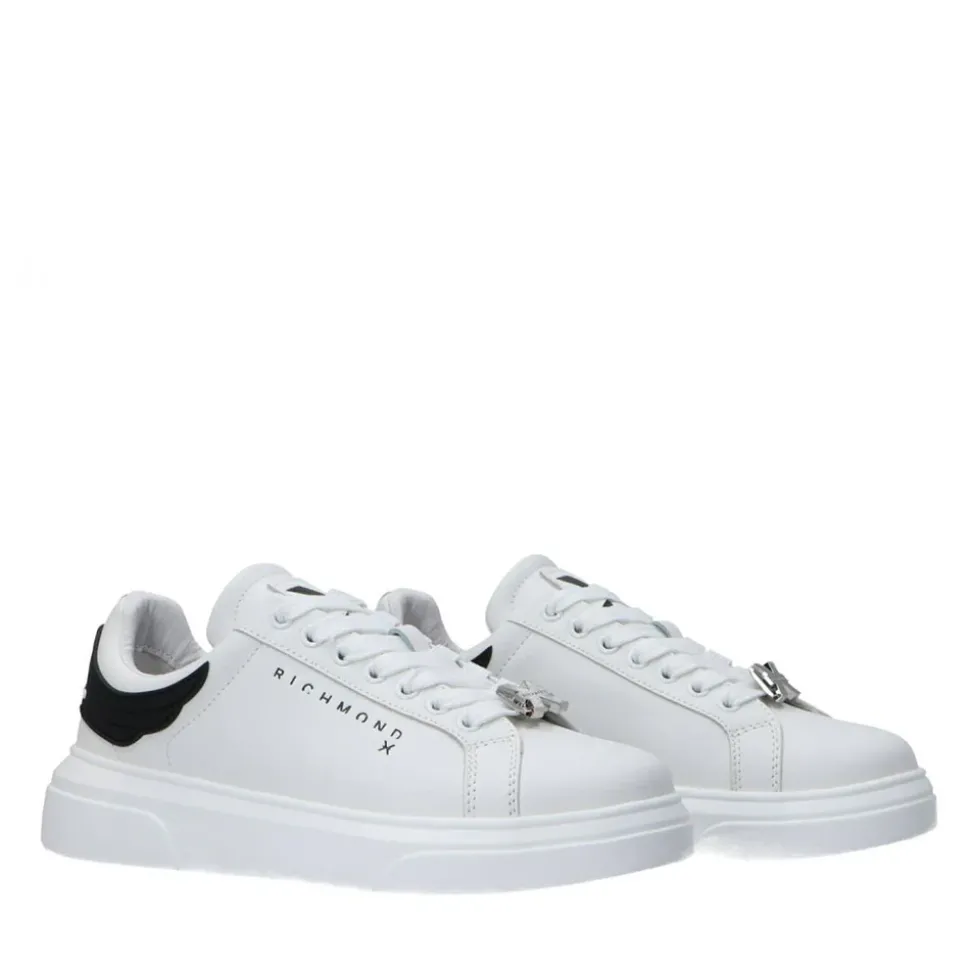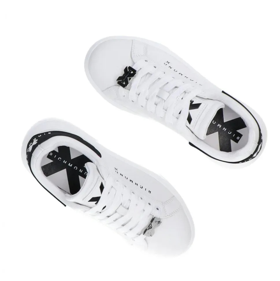 Sneakers John Richmond realizzate in pelle bianca. Logo laterale stampato. Inserto gommato sul tallone. Maxi suola in gomma.