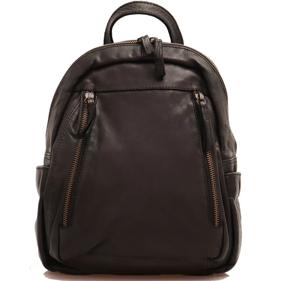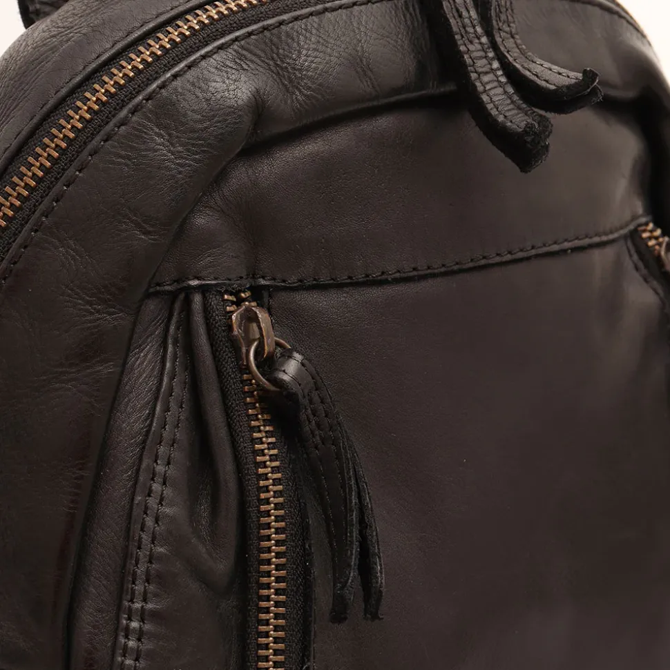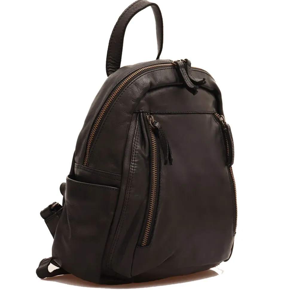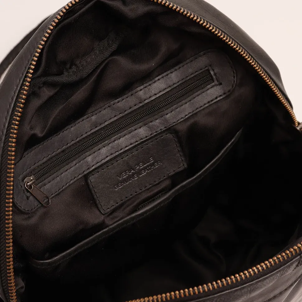 Zaino donna in pelle chiuso con zip. Una comoda tasca frontale chiusa con zip. Tasca posteriore con zip. Interno foderato e organizzato. Spallacci regolabili.
