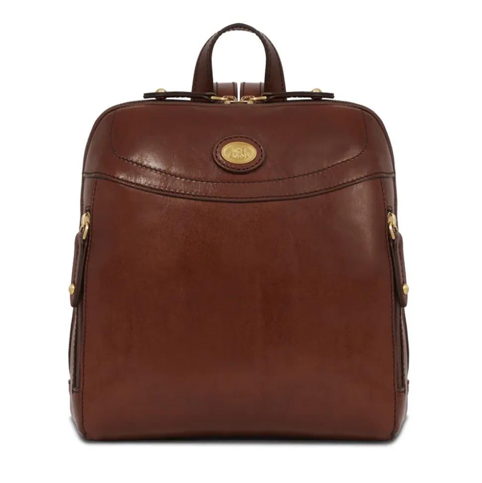 Zaino The Bridge in pelle marrone linea Story. Made in Italy.