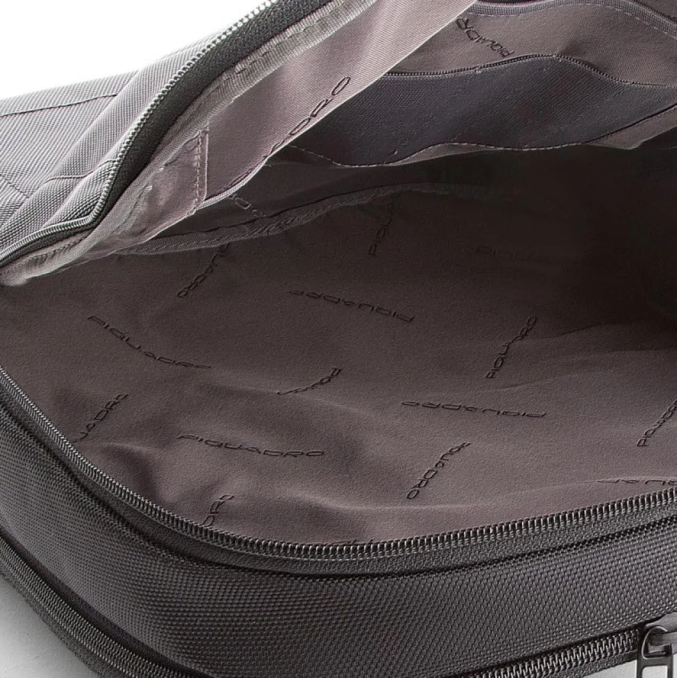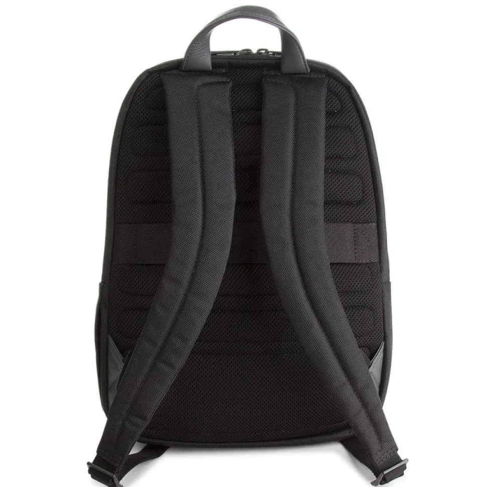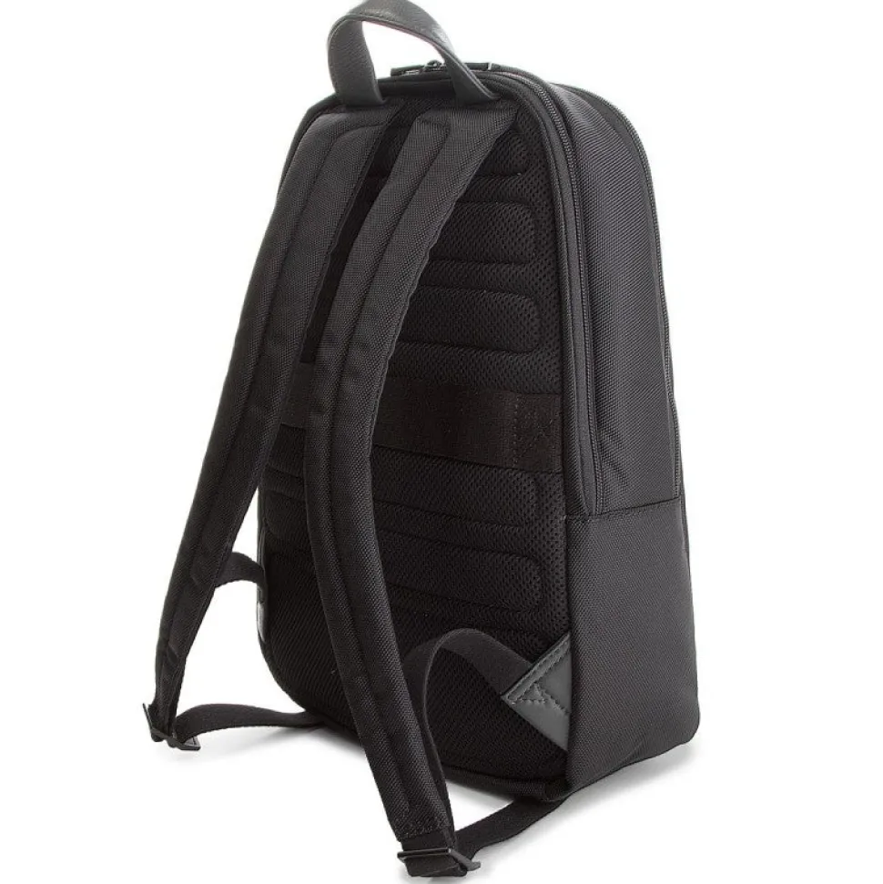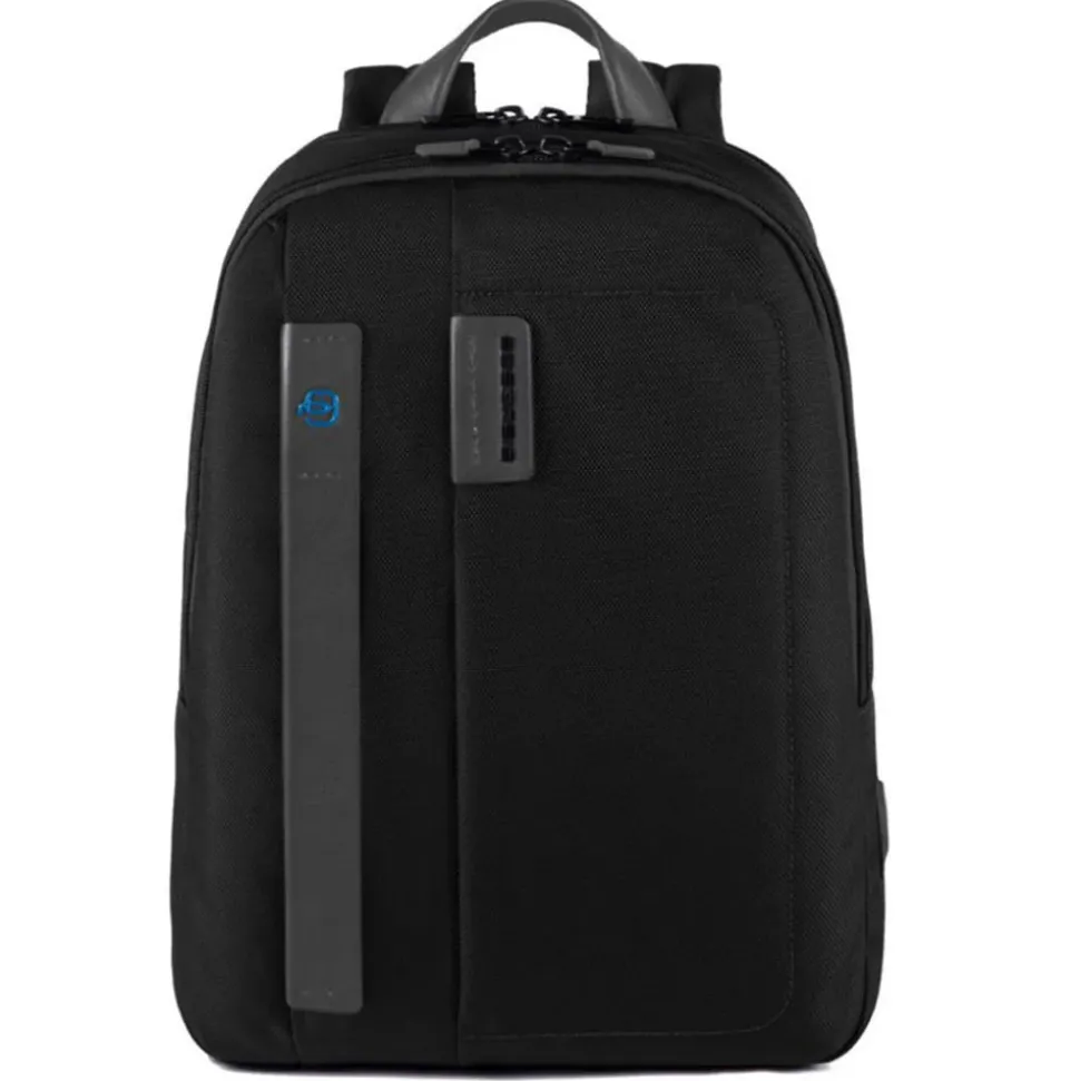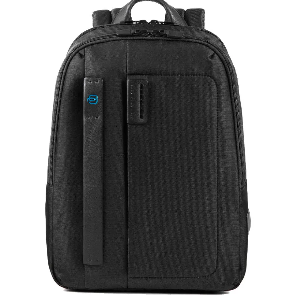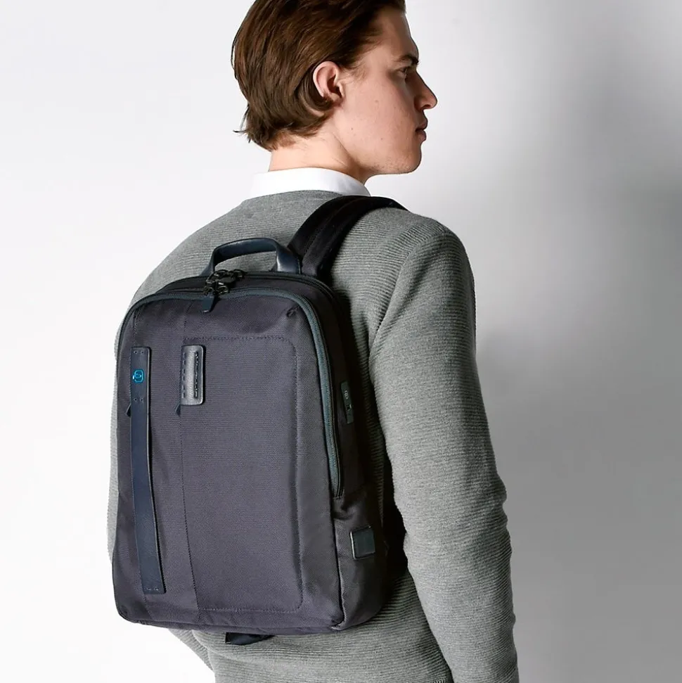 Zaino Pulse di Piquadro porta PC 14″ e tablet, porta ombrello o bottiglia ripiegabile, spallacci regolabili, sistema d’aggancio ai trolley con cordella, tasche interne porta oggetti, porta cellulare e porta penne.