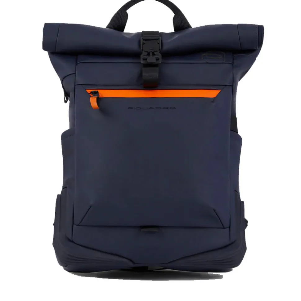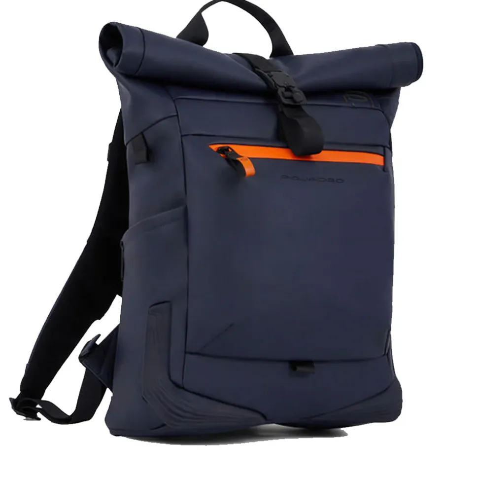 Zaino realizzato in tessuto gommato con chiusura roll top Piquadro linea Corner.